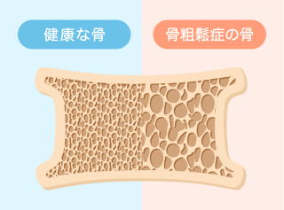 骨粗しょう症(骨粗鬆症)とは、骨の強度が低下してもろくなり、骨折しやすくなる病気です。骨の強度が低下する主な要因としては、女性ホルモンであるエストロゲンの欠乏、加齢、運動不足などの生活習慣の3つが考えられます。